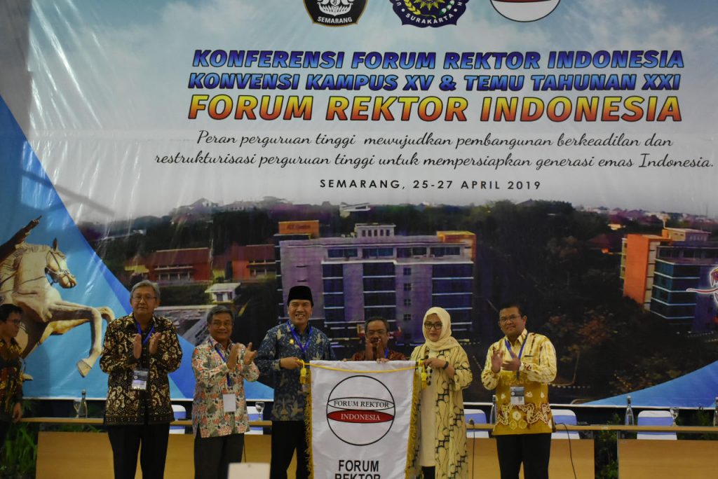 Universitas Diponegoro (Undip) selama dua hari telah berhasil dan sukses menyelenggarakan Konferensi Forum Rektor Indonesia (FRI) 2019. Kegiatan tahunan kali ini mengambil tema “Peran perguruan tinggi mewujudkan pembangunan berkeadilan dan restrukturisasi perguruan tinggi untuk mempersiapkan generasi emas Indonesia”. Konferensi yang di gelar dari hari Kamis-Sabtu (25-27 April) di gedung Prof Sudarto diikuti oleh rektor/pimpinan perguruan tinggi negeri (PTN) dan perguruan tinggis swasta (PTS) seluruh Indonesia, serta dibuka oleh Sekjen Kemenristekdikti, Prof. Ainun Na’im, Ph.D, MBA, mewakili menteri Ristekdikti yang berhalangan hadir karena ada tugas dari presiden ke China.