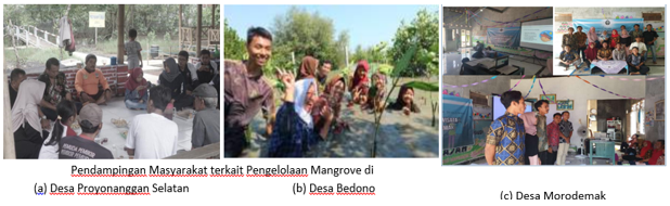 • Kegiatan pengelolaan mangrove, antara lain pengembangan ecotourism wisata mangrove di Desa Morodemak dan Desa Bedono – Kabupaten Demak, serta penyuluhan manajemen wisata edukasi mangrove di Desa Proyonanggan Selatan – Kabupaten Batang. Melalui kegiatan-kegiatan tersebut diharapkan dapat membawa dampak yang signifikan terhadap upaya mengatasi perubahan iklim dan mencapai tujuan pembangunan berkelanjutan.