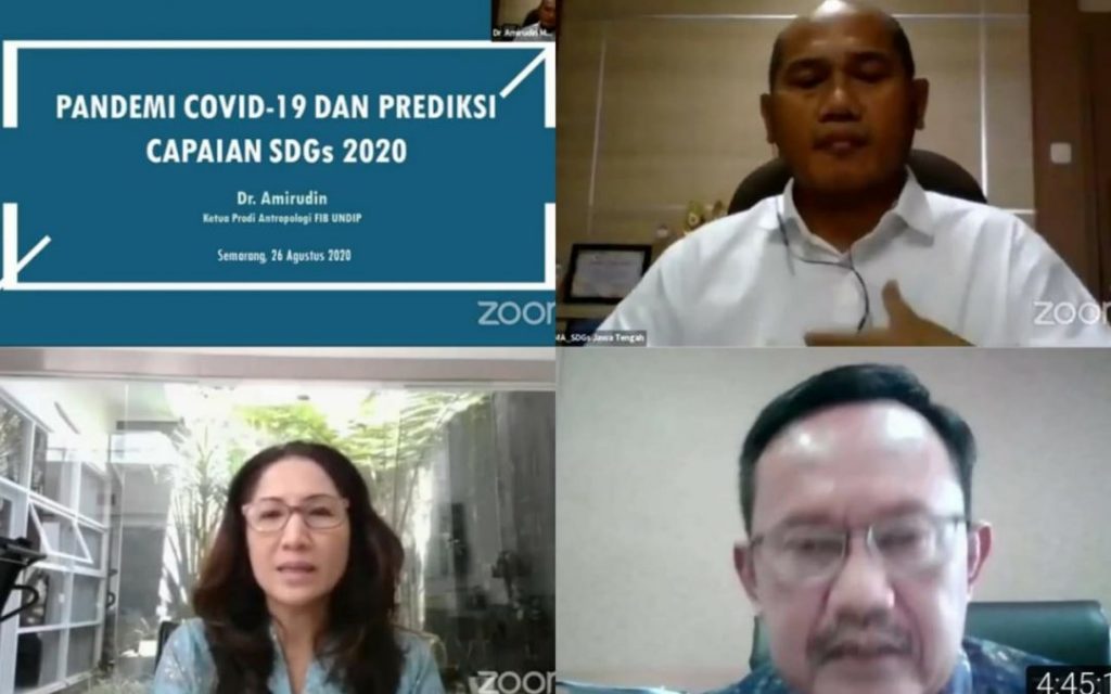 Hadir sebagai pemantik diskusi Direktur SDGs Center UNPAD Prof. Dr. Zuzy Anna, dan Dr. Amirudin Tim Ahli Sekreratiat SDGs Jawa Tengah yang sekaligus ketua SDGs Center Universitas Diponegoro dan Ketua Prodi Antropologi FIB UNDIP. Moderator: Drs. Indiarto MPd, Kasubbid PMS.