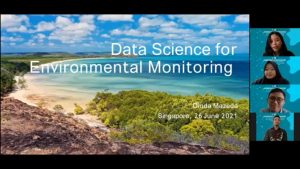 Materi terakhir disampaikan oleh Dinda Mazeda, S.Kel dengan judul: “Data Science for Environmental Monitoring”. Perspektif yang disampaikan adalah berkaitan dengan Enivronmental Impact Assessment juga analisis strategis yang berkenaan dengan kondisi lingkungan. Pengolahan dan analisis data dalam dasar pengambilan kebijakan merupakan salah satu masalah yang dapat pula diselesaikan dengan menggunakan bahasa pemrograman. Informasi ini juga memberikan gambaran bahwa dalam suatu proyek eksplorasi juga dapat mengaplikasikan bahasa pemrograman sebagai tools dalam proses analisis data.