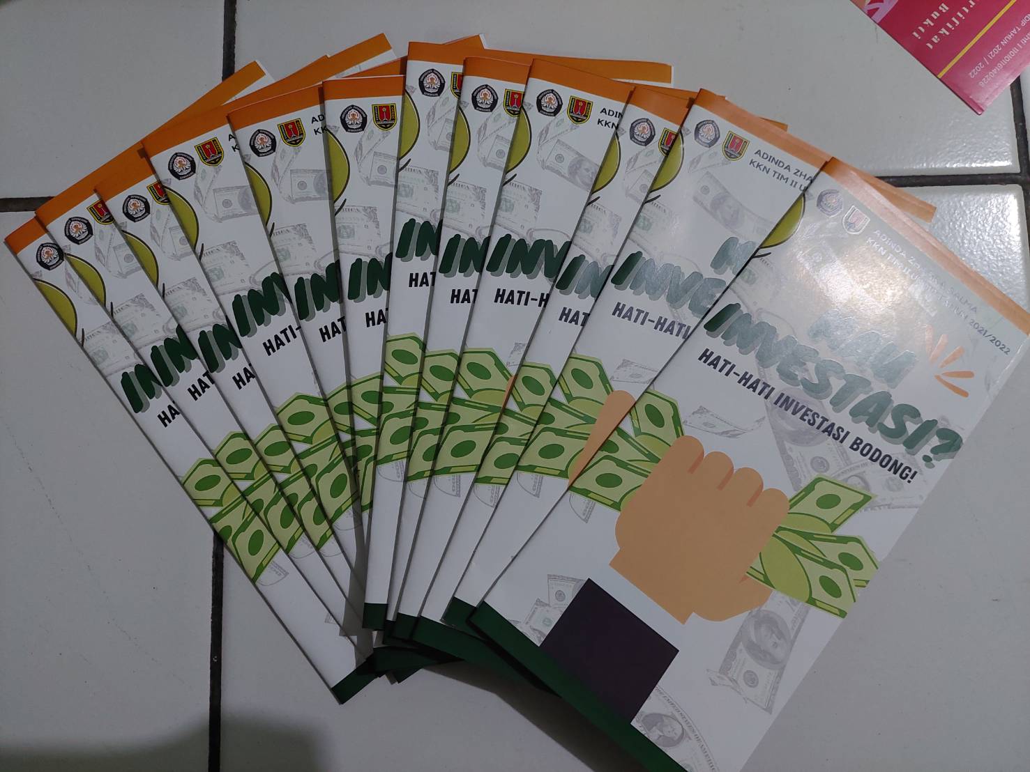 Penting untuk kita mencari tahu seluk beluk dari berbagai sisi investasi sebelum ingin melakukannya. Adanya kasus ini, mahasiswa berinisatif memberikan edukasi atau penyuluhan tentang bahaya investasi bodong agar masyarakat jadi lebih waspada sebelum melakukan investasi agar tidak menjadi korban investasi bodong. Program Sosialisasi & Edukasi Bahaya Investasi Bodong diawali dengan survey lokasi untuk pelaksanaan program, yaitu RW 12. Selanjutnya, mahasiswa melakukan pencarian terkait materi untuk disosialisasikan dan dibuat ke dalam bentuk leaflet sebagai bentuk media / output pendukung. Materi yang digunakan berkaitan dengan investasi bodong, seperti data mengenai investasi bodong di Indonesia, ciri-ciri investasi bodong, jenis-jenis investasi bodong, serta kontak regulator terkait investasi. Penyuluhan dilakukan pada hari Rabu (27/02) secara door to door (rumah ke rumah). Sebanyak 10 warga RW 12 yang mengikuti penyuluhan ini.