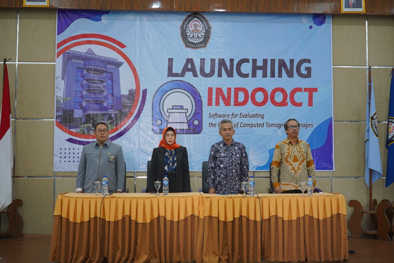 Departemen Fisika Universitas Diponegoro meluncurkan produk riset unggulan software IndoQCT bertempat di Ruang Aula lantai 6 gedung Acintya Prasada Fakultas Sains dan Matematika, kampus Undip Tembalang pada Rabu (14/6). IndoQCT adalah software yang fungsi utamanya adalah untuk melakukan pengukuran kualitas citra CT scan secara otomatis, cepat, dan akurat. IndoQCT juga memiliki banyak fitur yang lain seperti multiple windows-blending, noise reduction, anonimasi DICOM header, reformatting citra miring bahkan tak beraturan, dan masih banyak yang lain. IndoQCT merupakan software yang dikembangkan oleh Tim Peneliti Departemen Fisika, Fakultas Sains dan Matematika Undip, yang dipimpin oleh Dr. Choirul Anam, S.Si., M.Si., F.Med. Biasanya software tentang teknologi canggih seperti untuk CT (computed tomography) dikembangkan oleh lembaga-lembaga riset besar Amerika, Jerman, Prancis, Jepang, atau negara maju lainnya. IndoQCT merupakan software untuk pengukuran kualitas citra pertama yang dikembangkan di Indonesia, bahkan di Asia Tenggara.